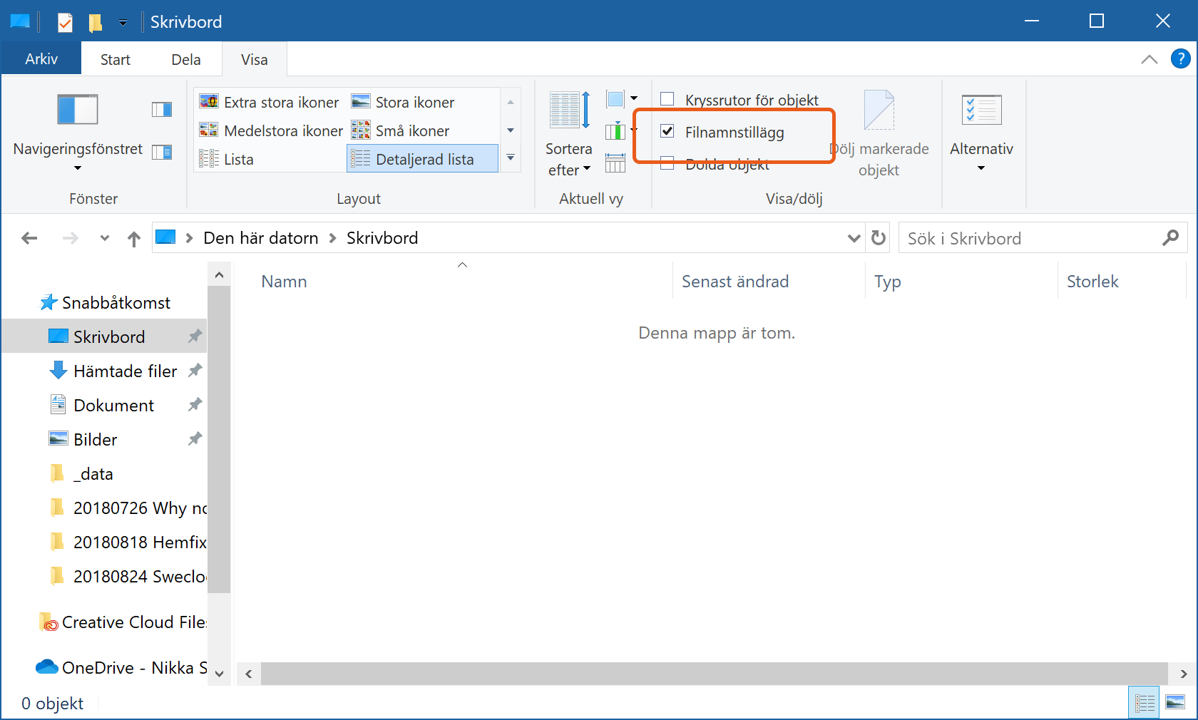 Slå på filändelser
